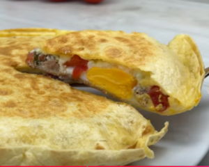 Суперфіналістка МастерШеф Ольга Рябенко пропонує рецепт дуже великого тосту, якого вистачить на всю сім'ю. Для його приготування знадобиться яловичина, сир, хліб та спеції.