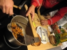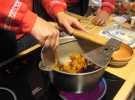 "Потім покладемо в готову кашу. Ніколи не готуйте зарання, лише разом з гостями. Процес приготування страв вже є розвагою, якої ваші гості не забудуть. Перше правило - в каші має бути сокира. Друге - щоб не потонула ложка. Ми варимо на основі кукурудзяної крупи, але можна на будь-якій. Головне - визначитися, чи це десерт, чи основна страва. Від цього залежать складники. Більше правил не існує. На кухні, як в літературі - якщо ви не здатні на творчість, вам там нема що робити."