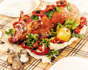 Історики мають чимало листівок та карикатур, на яких лежать печені та живі поросята.