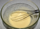 Молоко трохи підігріти, влити в яєчну масу і добре перемішати.