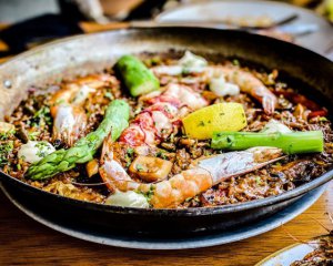 Паелья - іспанська страва, яку обожнюють в усьому світі. Готується із рису, овочів, спецій та морепродуктів. Їх за бажанням можна замінити улюбленим м'ясом.