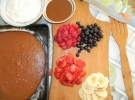Для начинки піци можна брати будь-які свіжі ягоди та фрукти. Смакуватиме малина з полуницею та бананами. Їх варто порізати на невеликі шматки.