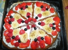Найкраще для фруктової піци підійде шоколадний бісквіт. Для його приготування знадобиться 2 яйця, три столові ложки цукру, 100 грам борошна.