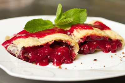 Дістати м'яту і полити гарячим сиропом готовий штрудель.