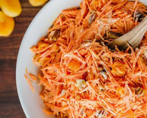 Поєднання моркви, родзинок та часнику приємно вражає смаком.