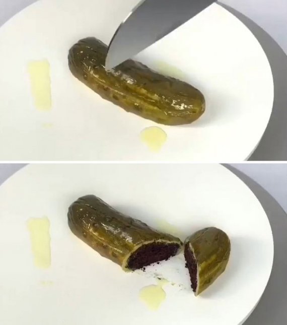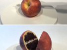 Одними з останніх робіт є фрукти та овочів. Про те, що вони не справжні вдається зрозуміти тільки після розрізання. До цього вони виглядають справжніми.