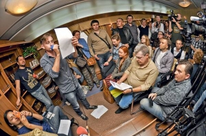 – Ти – найкращий провідник, якого я бачив, – 39-річний письменник Сергій Жадан протискується крізь натовп.