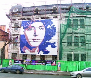 72-метрову картину розмістили на колишньому будинку торгівлі в центрі Вінниці. Споруду обставили будівельними лісами — триває її реконструкція.