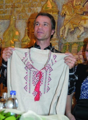 Перед концертом Брюно подарували вишиванку із зображенням терену та шпагу ручного кування за $2 тис.