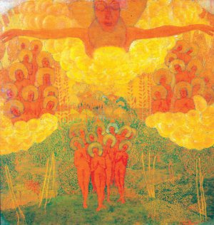 — Не ходжу по виставках, самому необхідно працювати, а для цього треба інтим і самотність. Зараз усі мої думки пов'язані з розписом церкви в селі Липівка біля Макарова на Київщині. Тут представлені фотографії цих розписів.