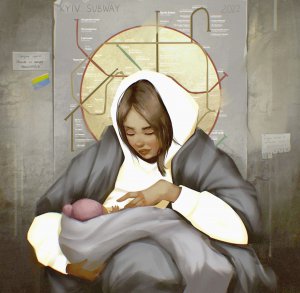 Іконою в католицькому храмі італійського Неаполя стала картина "Київська Мадонна" дніпровської художниці Марини СОЛОМЕННІКОВОЇ, 30 років. Зобразила жінку, яка годує немовля в столичному метрополітені під час боїв за місто.