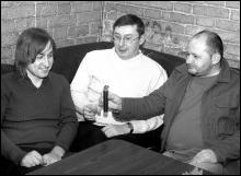— Ми чули, що "Ґринджолам" дали по "Мерседесу" і чотирикімнатні квартири. То все неправда. Користуємося громадським транспортом. Утрьох (два Романи й Андрій Пісецький. — "ГПУ") винаймаємо двокімнатну квартиру, — вів далі Костюк. — У нас іванофранківсько-київський гурт! Є п'ять музикантів і шостий — звукорежисер. А починали ми вдвох із Романом.