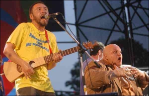 У суботу в столичному виставковому центрі (ВДНГ) пройшов 9 Міжнародний музичний фестиваль "Чайка". Закривав його пітерський панк-гурт "Ленінград". На сцену 12 музикантів групи вийшли в жовто-блакитних футболках з написом "Дякую Богу, що я не москаль".