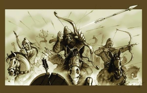 — Перший малюнок заскладний вийшов, — розповідає музикант. — Дуже довго його малював, три з половиною тижні. Капранових це не влаштовує, бо хочуть до Форуму видавців у вересні встигнути. Усього близько 40 малюнків має бути. Почав зі скіфів, бо Капранови сказали: "Якщо осилиш скіфів, значить, решту подужаєш". Зображень скіфів мало, і вони здебільшого недостовірні. Закордонні художники часто малюють їх зі стременами. Скіфи були вправними вершниками, але стремен іще не винайшли. Наїзник просто обхоплював коня ногами. Скіфи мають арабське походження, тому такі чорняві, бородаті. Усі герої, яких зображую, трошки схожі на мене. Сідаю біля дзеркала, корчу морди або стаю у потрібну позу, дивлюся на себе й малюю.