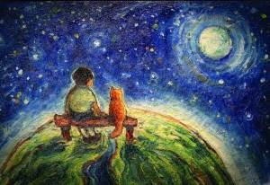 — Техніку тримала в таємниці. Показувала тільки друзям. Найдовше працювала над картиною "Край світу" — робила її два місяці. На ній зобразила хлопчика з котом. Вони сидять на лаві, що стоїть на планеті, — й дивляться у небо. Часто роботу відкладала, бо хотіла край світу зробити дуже гарним. На одну картину йде до 6 кілограмів фарби з піском. 100-грамовий тюбик коштує 50 гривень.