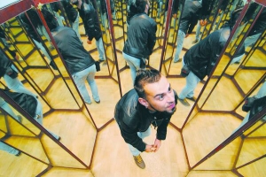 Глядачі заходять усередину шестикутного дзеркала заввишки понад 2 м. Кривляються, дивляться на "коридор" зі своїх відбиттів. Щоби зробити експонати, італійські експерти протягом 10 років вивчали щоденники художника. Леонардо да Вінчі винайшов планер, парашут, гелікоптер, велосипед, прототип сучасного танка, кулемет, автомобіль, підводний човен, підшипник.