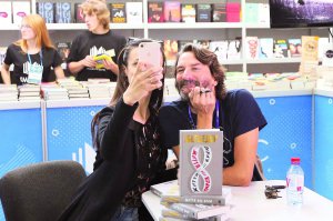 Тут пізніше відбувається презентація французького письменника Фредеріка Беґбедера, 53 роки. За день до того новий роман "Життя без краю" представляв у Києві.