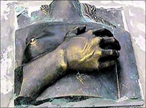 Жіночі груди другого розміру, на яких лежить чоловіча рука — такий пам"ятник установили в російському місті Батайськ неподалік Ростова.