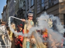 Участь у ній взяли усі театральні колективи, які братимуть участь у заході. Серед них було багато клоунів, людей на ходулях та у карнавальних костюмах. Вони веселилися, палили димові шашки, танцювали та били у барабани.