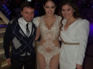 За вечір співачка тричі переодягалася. Другого разу одягнула короткий золотистий піджак із шортиками, а на третій раз вийшла в строгому сірому костюмі.