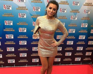 Співачка, справжнє ім'я якої Віра Галушка, заспівала на російській сцені свою пісню "Близкие люди" й позувала для фотографів у руках зі статуеткою "Золотого грамофону". 35-річна зірка обрала для премії яскраво-рожевий костюм.