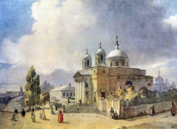 Овальна печатка "Бібліотека Сан-Донато" на роботі свідчить, що вона походить з колекції Анатолія Демідова, стверджує Федір Зернецький. Демідов - це благодійник та патрон Карла Брюллова. Меценат, один з найбагатших в Російській імперії. Утримував Академію мистецтв. географічне, археографічне товариства. Дійсний статний радник Миколи І, масон. Вмовив російського дворянина Енгельгардта відпустити Шевченка з кріпацтва за 2500 рублів. Допоміг отримати молодому Тарасу освіту в Академії мистецтв, оплатив археографічну експедицію, яка досліджувала історичні пам'ятки Києва. В її складі Шевченко писав акварельні малюнки з видами міста, щоб зафіксувати вигляд тогочасної архітектури. На думку Зернецького, на знак вдячності Тарас Григорович найкращі акварелі дарував Демідову. Робив дві версії – одну для експедиції, другу для мецената. Підписувати не міг, бо не був власником роботи. Після смерті Анатолія Демідова, папка перейшла до його племінника Павла Павловича, який дві каденції був генерал-губернатором Києва. Потім до його сина. Після революції родина переїхала до Італії. Син посла у Флоренції, Анатолій заснував там фабрику шовку. Герцог Тосканський дав Демідову титул князя Сан-Донато, який перейшов його спадкоємцям.