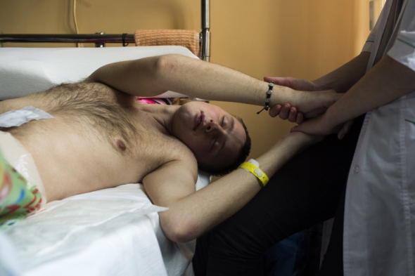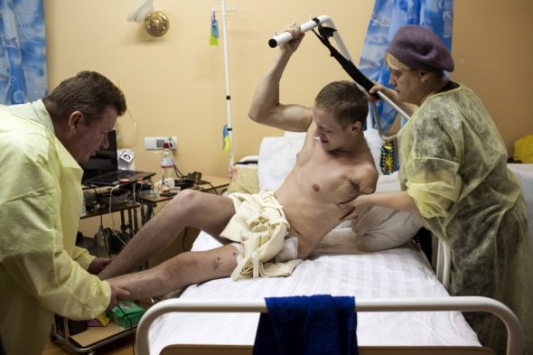 "Це знімки українських солдатів, яких тяжко поранили під час Євромайдану та АТО, - розповідає фотограф Йосип Сивенький. - У когось обгоріло все тіло, хтось страждає від нестерпного болю і не може ходити, хтось втратив руку чи ногу. Є такі, що страждають на посттравматичний стресовий розлад. Багато військових залежні від знеболювальних препаратів. Всіх їх об'єднує 2 речі: біль – сильний фізичний чи емоційний, а також складне завдання адаптуватися до нового життя після поранення".