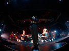 Заключний номер концерту - Throne, за музикантами висвічуються напис "сідай" різними мовами. Публіка слухняно опускається на підлогу. На приспіві всі, як один, підстрибують.