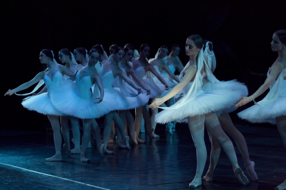 Зала вибухає оплесками, коли одна за одною повільно синхронно рухаючись вервечкою на сцену виходять 32 балерини в білих пачках, симетрично розміщуються у шаховому порядку. Кожен синхронний рух їх створював красиве видиво - то здавалися полем квітів, то зграєю фламінго. Глядачі на балконах, повідкладавши біноклі, починають фотографувати сцену на мобільні. У партері такої архітектури зображення видно не було. По закінченні вистави артистам стоячи аплодують 10 хвилин.