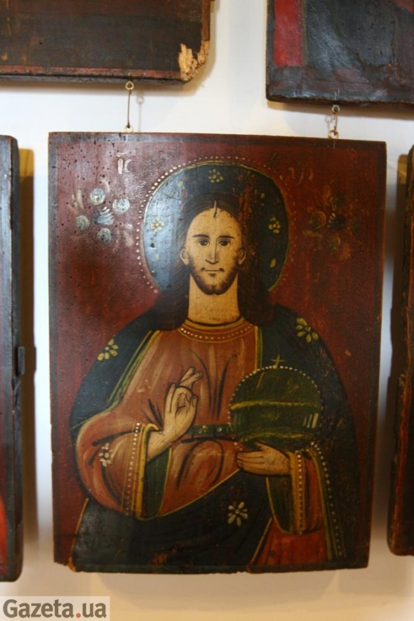 "Ікона може коштувати сто гривень. А для того, щоб її вернути до життя, потрібна тисяча а то й дві, - розповідає Ольга Богомолець. - Спочатку образ має розпрямитися. Багато ікон в трубки скручені. Раз купила скручений в трубку рулон. Навіть не бачила, що на ньому. Разом з реставратором своїми руками знімала 5 міліметрів повністю чорного шару. Спочатку відкрилися лики. Потім голубе тло. Це домашній іконостас з Полтавщини. Полтавчани бачили Бога на тлі голубого неба".