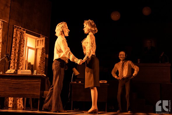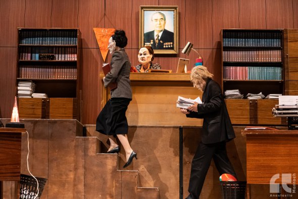 "Маттео мав ідею показати життя одного офісу за 30-40 років, - розповідає вона. - Як зовнішні історичні події впливають на маленьких людей, яке все життя пропрацювали в одному місці. Починаємо з часів Брежнєва, далі Андропов, Черненко, перебудова, Чорнобиль. І друга дія відбувається в часи незалежності України. Моїм головним завданням було зрозуміти цей історичний період. Дати більше нюансів, які можна використати в дії. І які будуть зрозумілі глядачам без слів. Дивилося архівні фотографії, фільми, кіножурнал "Фітіль". Це не "Службовий роман". У нас серйозна тема – радянська пропаганда, КДБ, несвобода, в якій жили люди. Немає ностальгії за радянським минулим. Показуємо, які це були страшні часи. Не випадково доходимо до Помаранчевої революції 2004 року. Це було перше усвідомлення боротьби за свободу. Коли люди вирішили тікати від радянщини, пробували відстоювати свою незалежність, щось змінити.