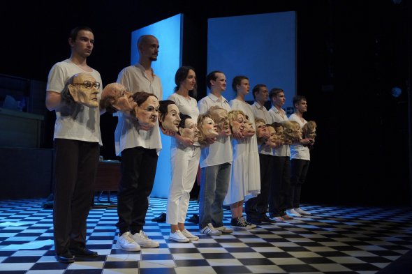 Незалежно від віку персонажу, маски виглядають як обличчя старих людей. Це технічний момент, бо маска є інструментом виразності. Чим старіше обличчя, тим воно виразніше. Маска молодої людини, яка не має зморшок, залишається статичною. А нам треба було, щоб при повороті голови змінювався і вираз обличчя персонажа. Пластилінові маски перевіряли на роботу зі світлом. І лише потім робили з пап'є-маше для вистави. Загалом виготовили 30 масок для двох складів. У кожного індивідуальна. Робилася під форму обличчя актора.