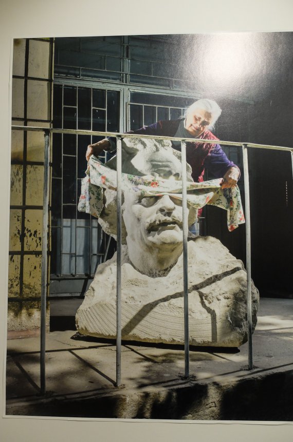 "Розсмішило фото, де у чоловіка на весь здоровенний живіт набито татуювання у вигляді Діви Марії та Ісуса Христа. Просто у нас такі люди, якщо чимось захоплюються, то вже переходять всіляку межу. Ще є зображення з віконницями, де замуроване місце для вікна. Здавалося там, де мав би бути вихід, його нема. Біля самого входу висить світлина, де бабця накриває хустинкою скульптуру у вигляді чоловічої голови. Спочатку думала, що то Сталін, через вуса. Виявилося, що якийсь гуцул. Поряд висить зображення з військового магазину. На ньому в ряд стоять дорогі рушниці, а знизу дешевий мотлох. Іноземці б ніколи не помістили зброю вкупі з копійчаними телефонами, знайшли б окреме місце для дорогих речей", - каже журналістка Віра Федорук.