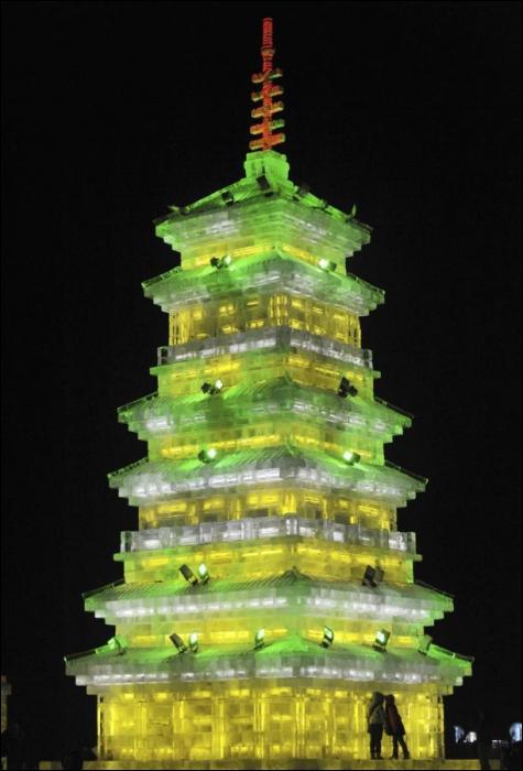 25-й Міжнародний фестиваль Криги і Снігу розпочнеться 5 січня 2009 року в китайському місті Харбіні (Harbin, Heilongjiang Province) Вже зараз відвідувачі із захопленням споглядають дивовижні крижані скульптури. Організатори стверджують, що гігантський Санта Клаус, якого зпорудили в зимовому крижаному містечку у Харбіні - найбільший у світі. ФОТО: REUTERS/Sheng Li (CHINA)