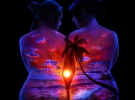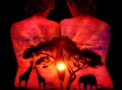 Художник Джон Попплтон з Каліфорнії у свєму фотопроекті зображає голих жінок на чорному тлі. На спинах натурниць митець відтворює пейзажі, природні явища, заходи сонця в Африці, дощ у тропіках та гори у місячному сяйві.