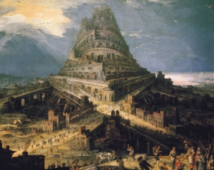 Вавилонська вежа — одна з найграндіозніших споруд стародавнього Вавилону. Символ сум'яття і безладу. За легендою Бог розгнівався на нерозсудних і пихатих людей та покарав їх. Змусив будівельників розмовляти різними мовами. Творці вежі, не зрозумівши один одного, занедбали будівництво та розійшлися у різні боки. Так вежа залишилася недобудованою. Місто, де відбувалося будівництво і змішалися усі мови, назвали Вавилоном.