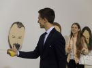 "Добре, що мене повісили не при вході. Інакше вийшло б витончене знущання над мовними патріотами. Приходять вони такі на виставку з духопід'ємною назвою "Носії мови", а там українофоб Володарський показує їм противний зелений язик",- каже Юрій Володарський.