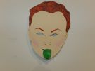"Через цю маску мене почали називати "Синьою бородою". З дитинства пам'ятаю, що це вбивця багатьох своїх дружин. Борода на масці синя, обличчя - жовте. Це патріотично. А язик тут у мене зелений, бо прихильний до зеленого руху. Охоче зберігаю природу", - каже Борис Херсонський.