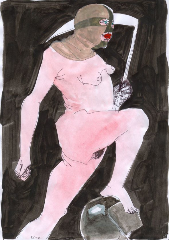 Художниця Влада Ралко виставила у мережу свою картину з "Київського щоденника", яку написала під час Майдану. Росія на ній з'являється в образі оголеної жінки з косою, яка спирається на чорний шолом солдата.