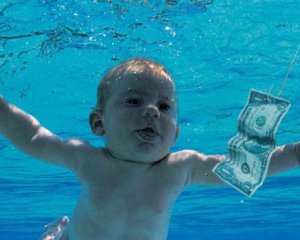 Американець Спенсер Елден подав до суду на рок-гурт Nirvana. Фотографія хлопця розміщена на обкладинці альбому Nevermind. На зображенні 4-місячний оголений Елден пливе під водою у напрямку гачка з купюрою $2.