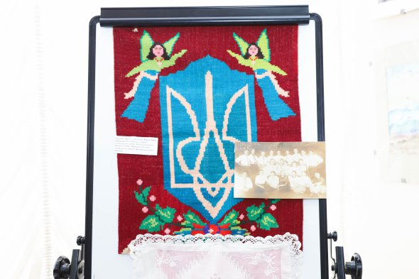 У найменшому залі під склом лежить вишитий герб України. Фон червоного кольору, а з боків два зелених янголи. Його створила 16-річна звязкова медсестра з села Зубків на Львівщині в 1940 році. Вишивку переховувала від тодішньої влади родина з сусіднього села, а в 2016-му повернула родичам майстрині. Виставку до фестивалю підготувала українська письменниця Леся Воронюк.