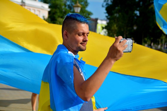 "Я виріс на російському році. Слухав "Кукринікси", "Агата Крісті", "Акваріум". А в 2014-му як рукою зняло", - каже довговолосий парубок у чорній футболці. З друзями несуть через центральну частину міста Ізмаїла 100-метровий прапор України. Колона фінішує біля пам'ятника загиблим морякам-дунайцям. Там встановлена головна сцена фестивалю. Цьогоріч всі виступи відбуваються на відновлюваній сонячній енергії. Тому організатори називають його енергонезалежним.