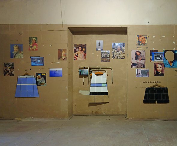 "Плитку знімали в тому ж порядку, в якому вона висіла — клеїли на дерев'яну основу — створювали деталі гардеробу, — каже художниця. - Виглядає як звичайний одяг на вішалці. Але по суті проект не про вбрання — а про стіни, про будівлі, які змінюють власників, як одяг з секонд-хендів. Споруду, яка приймає "ГогольFest" звели ще до Другої світової. Достеменно невідомо, що там було до війни — припускають, що школа. Потім там була кінокопіювальна фабрика, найбільша в Радянському Союзі. Друкували плівки на 14 республік, окрім Росії. Зараз будівлю мають знести. Стіни третього поверху, де колись була анімаційної студії "Борисфен-Лютес", повністю замальовані професійними малюнками співробітників студії — мультиплікаторів. Будівля — капітальна. У цокольному поверсі стіни завтовшки з метр. Не розумію, навіщо її нищити, якщо можна було просто відремонтувати, провести нові комунікації. Але у 2008 році будівлю продали, очевидно, з дозволу Міністерства культури. У сильних світу цього — свої плани, вони купують такі споруди, щоби зносити і будувати на їх місці торгівельно-розважальні центри. І назад вже не відмотаєш — це не кіно".