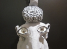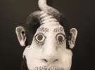 Автор зупиняється біля масок "Парочка": "Ці двоє міцно пов'язані конічними маківками у вузол. Схоже, їхні стосунки надійні. Але вузол може значити також і обмеження свободи. А от маска "Клітка" закликає звільнятися від внутрішніх ґраток. Програмова маска цієї виставки називається "Тримати лице". Поясню її так: люди вважають, що обличчю не досить бути передньою частиною голови. Ця частина - статусна. Тому будь-що намагаємося подати її найвигідніше і найпривабливіше. А не помічаємо, що обличчя стають при цьому штучними".