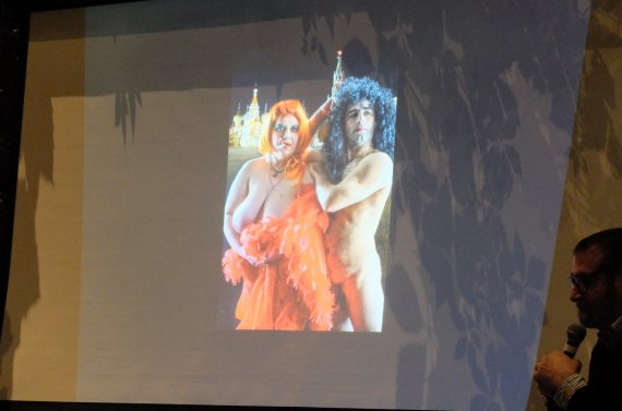 Український фотохудожник Роман Пятковка створив серію робіт "Третій Рим". На фото зображені огрядні жінки й чоловіки на фоні Кремля.