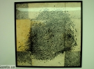"Ковдра" — це картина зі склеєних купюр. Нагадує переплетіння волокон тканин.