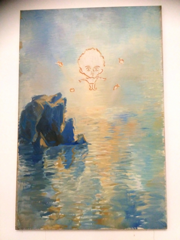 На картині "Русалка" морська істота зображена з посохом. Її не пускають на якусь вечірку, бо вона не людина. Для цього йде на жертву – розрізає собі плавник, щоб стати людиною. В морській пучині розливається її кров.