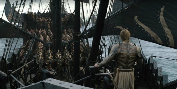 Потім ми рухаємося далі на південь до флоту кораблів Еурона Грейджоя. Раніше за серіалом Серсея відправила Еурона в Ессос з місією - він мав домовитися з легендарними найманцями "Золотими мечами" про те, щоб вони билися за Серсею.