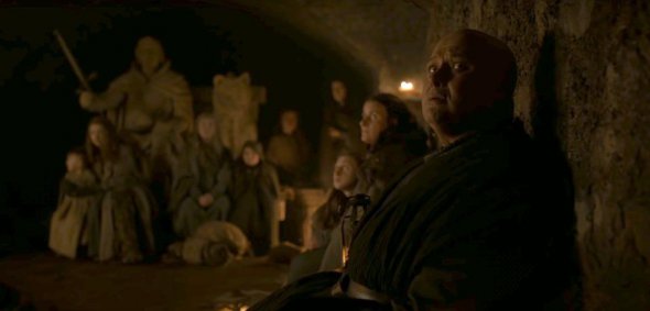 "У неї багато облич", - продовжує вона і ми бачимо Варіса і Лілі з маленьким Семом на руках в склепах Вінтерфеллу.