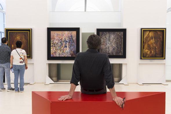 Розташована на двох поверхах історичної споруди XVII століття в самому центрі Відня, виставка повністю представляє всі 15 живописних циклів художника, створених від 1965 року до останнього місяця перед відкриттям експозиції, включаючи нову серію "Віденська рапсодія". Експозиція доповнена імерсивними інсталяціями, що дозволяють відвідувачам повністю зануритись у філософський та емоційний світ художника.